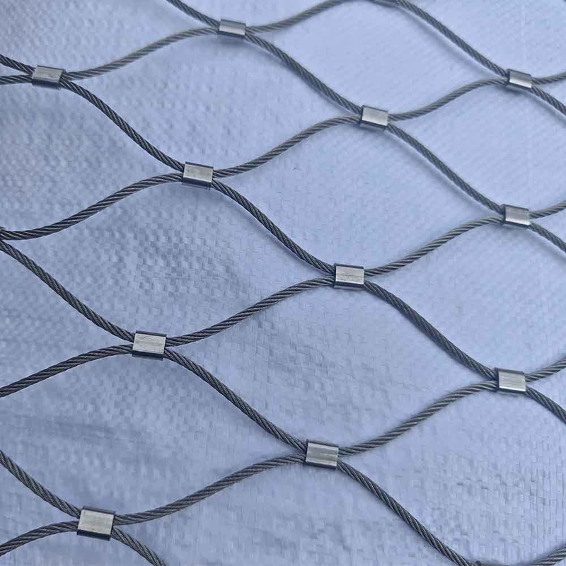 La maille de câbles en acier inoxydable est un type de maille métallique qui est fabriquée en tissant ensemble des fils en acier inoxydable.créer une structure en forme de filet qui est solideLa maille est couramment utilisée dans une variété d'applications telles que les conceptions architecturales, les zoos et les enclos pour animaux, les filets de sécurité et les barrières de protection.